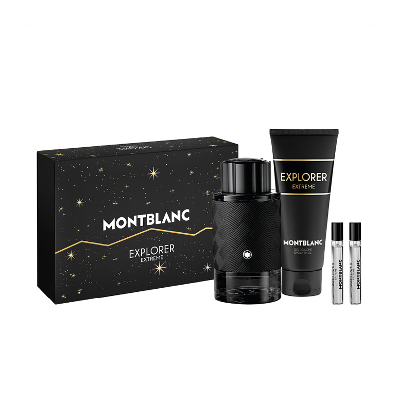 ست هدیه مون بلان اکسپلورر اکستریم شامل یک عطر 100 میل، یک شامپو بدن 100 میل و دو عطر 7.5 میل است.
